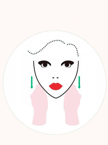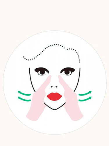 - Avucunuzu yanaklarınızın üzerine koyun ve kulaklara doğru sanki süpürürmüş gibi ellerinizi hareket ettirin. Bu hareketi 6 kez tekrarlayın.